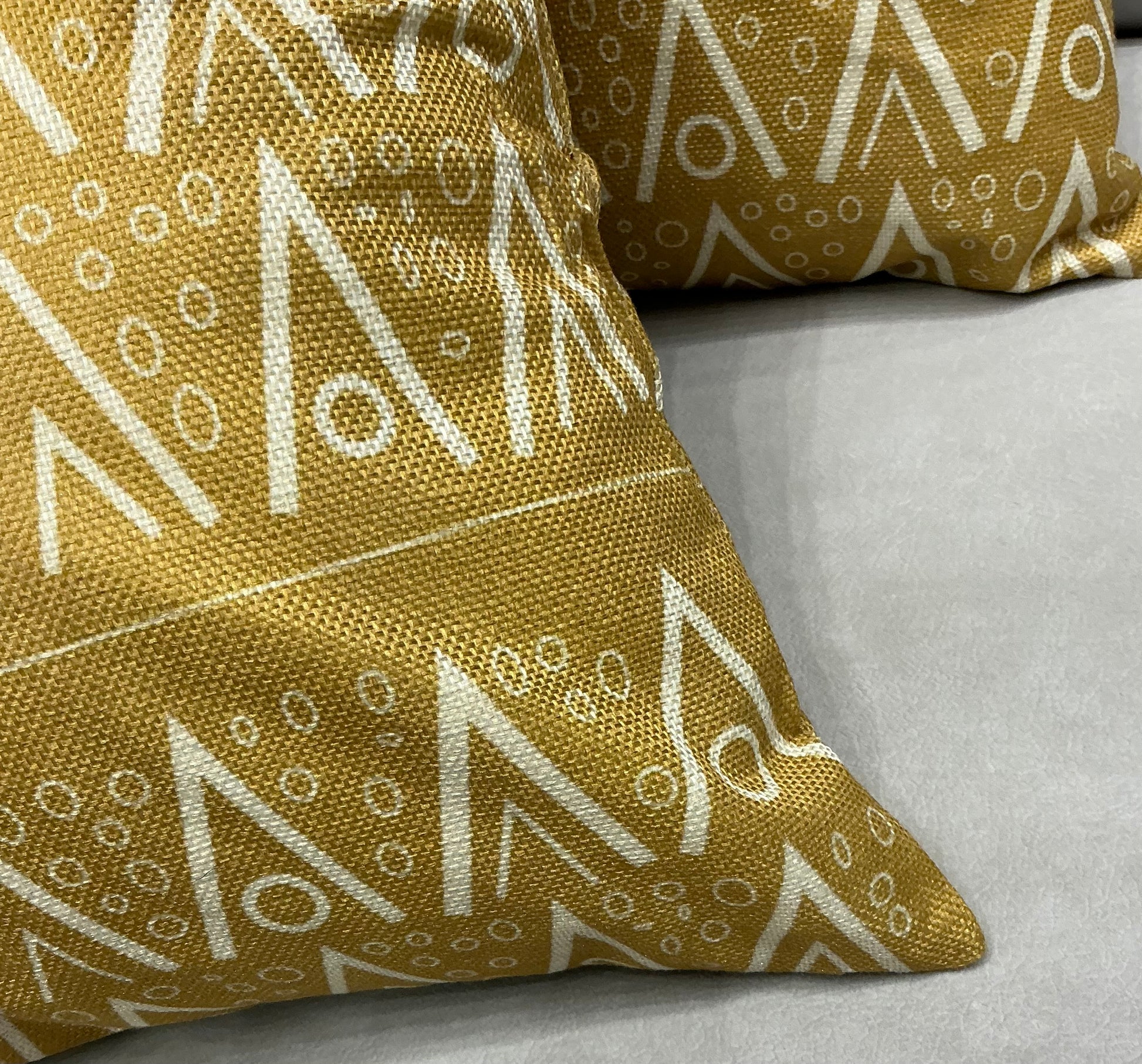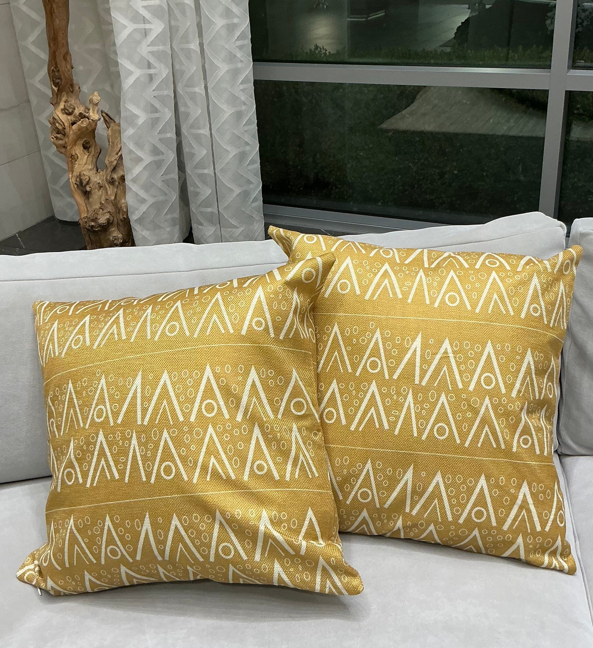 Mustard Yellow Pillow with Zigzag Pattern: Add a pop of warmth to any room with this mustard yellow pillow, adorned with an intricate white zigzag pattern. This stylish cushion is perfect for cozying up your living space, offering both elegance and support.